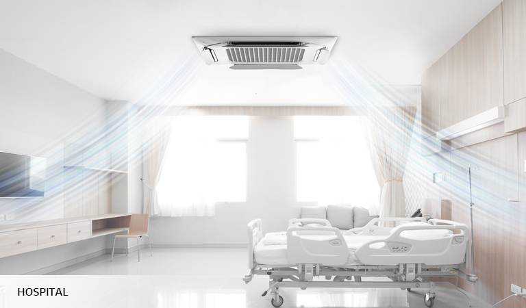 LG’s HVAC system can play a large role in providing high quality care for long-stay patients. For instance, LG DUAL Vane Cassette, an indoor ceiling cassette, provides six different airflows which allow optimal comfort for each space in a hospital. Indirect airflow mode, in specific, prevents air blowing directly on a person which helps patients to relax in a cool and pleasant environment.