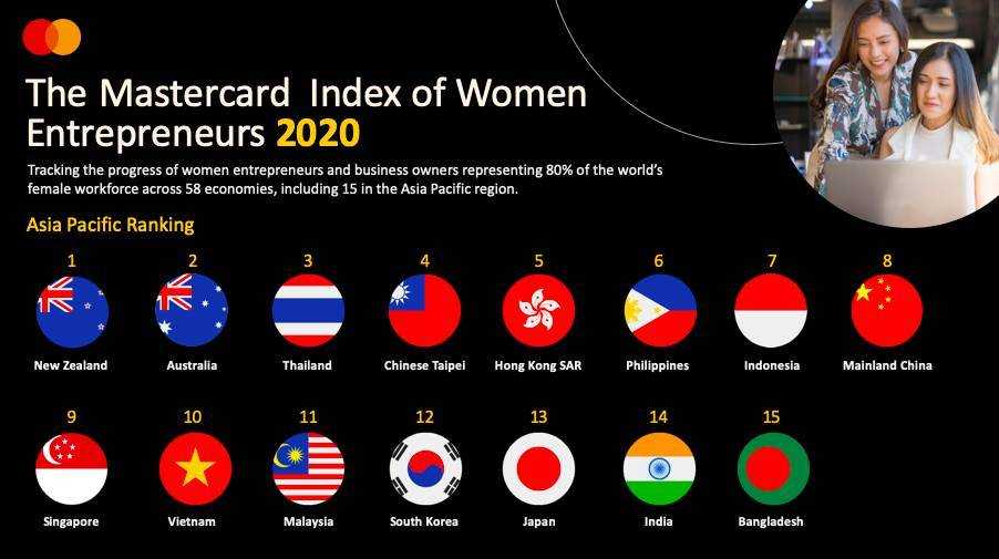 New Zealand, Australia, Thailand, Chinese Taipei, Hong Kong SAR, Philippines and Indonesia make the list of the top 20 economies globally offering the most supportive entrepreneurial conditions for women