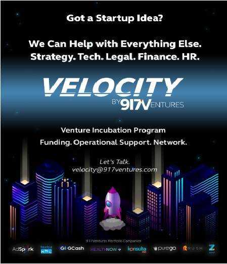 Anyone with viable ideas related to the 917Ventures focus areas may join Velocity, the company’s newly-launched venture builders program which will initially run for three months. The program seeks to gather and fund the best innovators in Southeast Asia. Talents who manage to build a meaningful product with proven traction will continue in the venture development journey through a seed round, with the ultimate goal of spinning off as an independent entity. Up to 10 finalists will be selected to partake in this exclusive program.