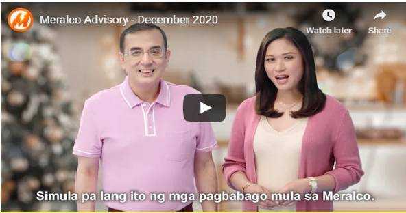 For more information and concerns, customers may visit MERALCO’s website at www.MERALCO.com.ph, its social media accounts, twitter @MERALCO and Facebook at www.facebook.com/MERALCO or may also call the MERALCO Hotline at 16211.
