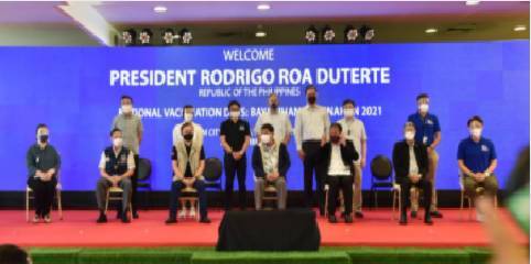 Dubbed Bayanihan Bakunahan, the three-day vaccination drive’s ceremonial launch at SM City Masinag was attended by President Rodrigo Roa Duterte; Secretary Carlito Galvez Jr., National Task Force against Coronavirus Disease-2019 (NTF COVID-19) chief implementer; Health Secretary Francisco Duque III; Senator Christopher Lawrence “Bong” Go, Chair, Senate Committee on Health and Demography;