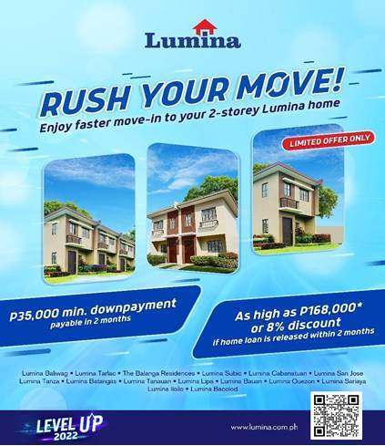 Some homeseekers like pre-selling homes, but some prefer to move-in in a snap of a finger! And if you like it faster, you can even save as high as P168,000 at Lumina Homes’ Rush Your Move promo.