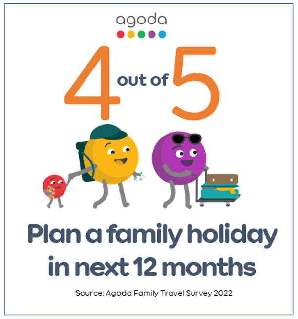 Digital travel platform Agoda’s Family Travel Trend Survey 2022 reveals that four out of five travelers will take a vacation with immediate family in the next 12 months and, while travelling with friends proves more popular than travelling with extended family, still more than half (52%) are keen to catch up with relatives for their vacation.
