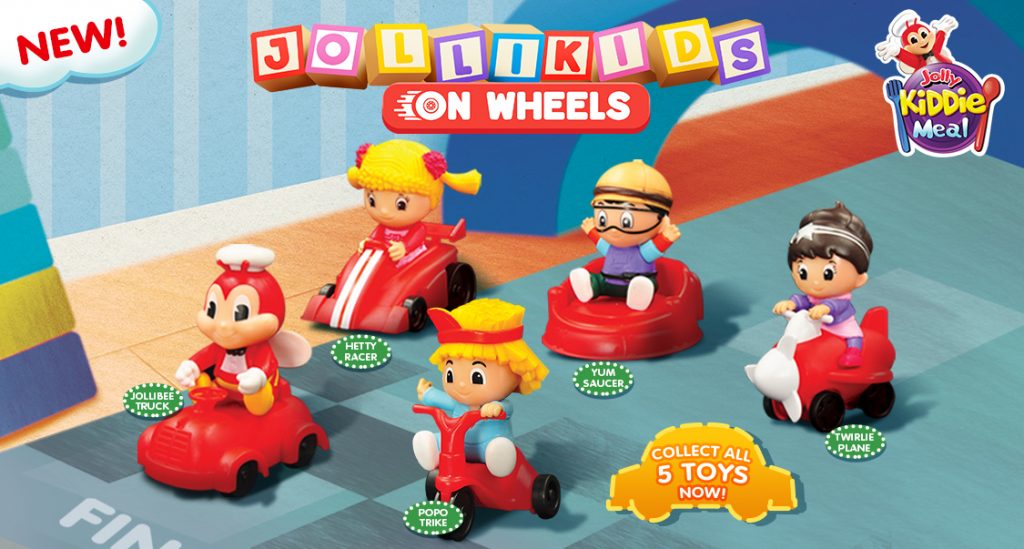 Kick off the new year fun and fast by making your kids’ playtime even more exciting! Jollibee and the whole gang of kiddie mascots race into your homes in their favorite rides in the newest racing-themed Jolly Kiddie Meal toys—Jollikids on Wheels!