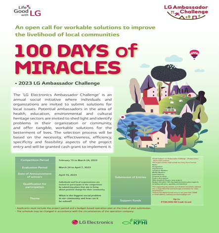 Following the success of the Philippine pilot the past year, LG renews the call for entries for the Ambassador Challenge until March 24. The global initiative, spearheaded by Korea Friends of Hope International (KFHI), reiterates LG’s commitment to play an active role in local communities and help drive sustainable growth.