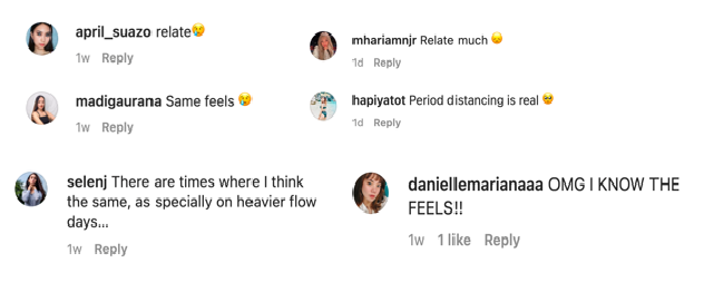 Girls who were able to relate have flooded the comments section of #PeriodDistancing posts with encouraging words and virtual hugs, validating each other’s experiences, and removing the shame associated with it. More importantly, they’ve also shared useful tips and information on how to minimize period odors through proper menstrual hygiene management such as washing their vaginal area regularly and changing pads more frequently.