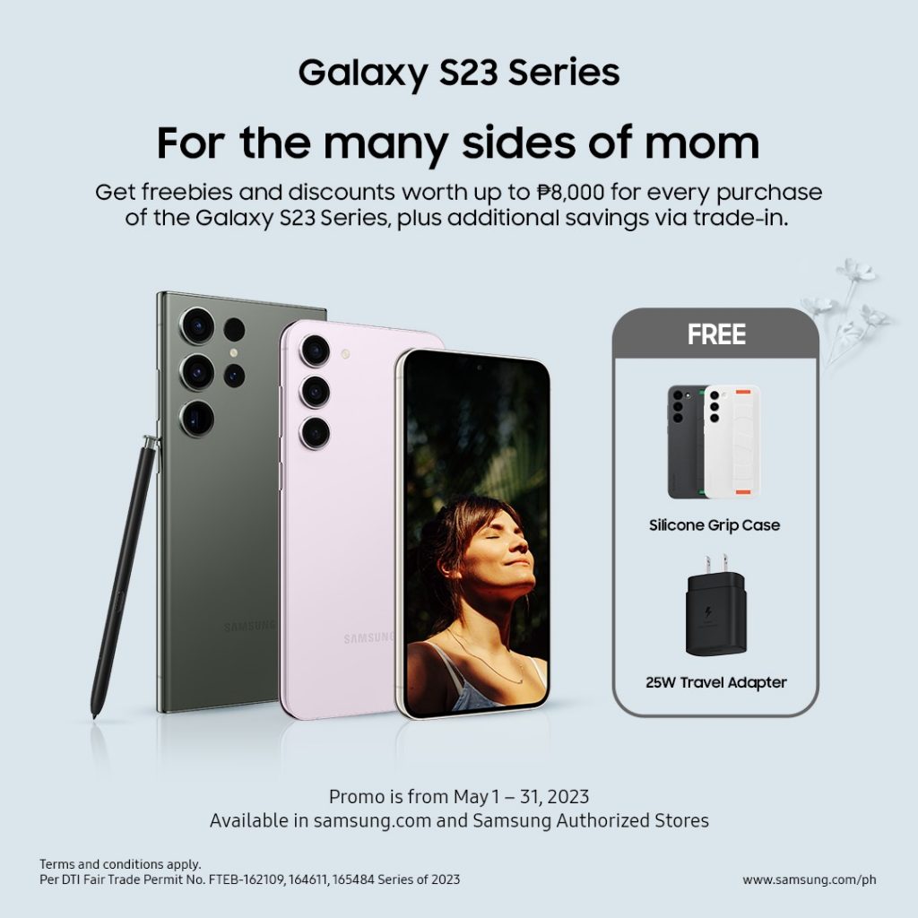 For the woman who does an epic job of caring for her family, give her any device from the newest Galaxy S23 series and get discounts and freebies worth up to PHP 8,000, including a free phone case and a 25W travel adapter when you shop now until May 31. If you are on a budget, you can also trade in your older phone for a Galaxy S23 series phone and save up to PHP13,000.