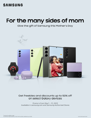 Surprise mom with gifts that cater to each of her unique traits with Samsung’s latest offers. Various freebies await you from May 1 until May 31 of 2023. Visit your Samsung Experience Stores and authorized stores this May!