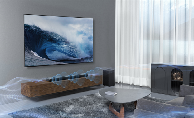 It also comes with DTS Virtual: X, an audio codec designed to provide a sense of multi-dimensional space. This 3D sound effect envelopes users so that sound appears to emerge from above, beside, and behind the listener, providing an immersive experience in any room.