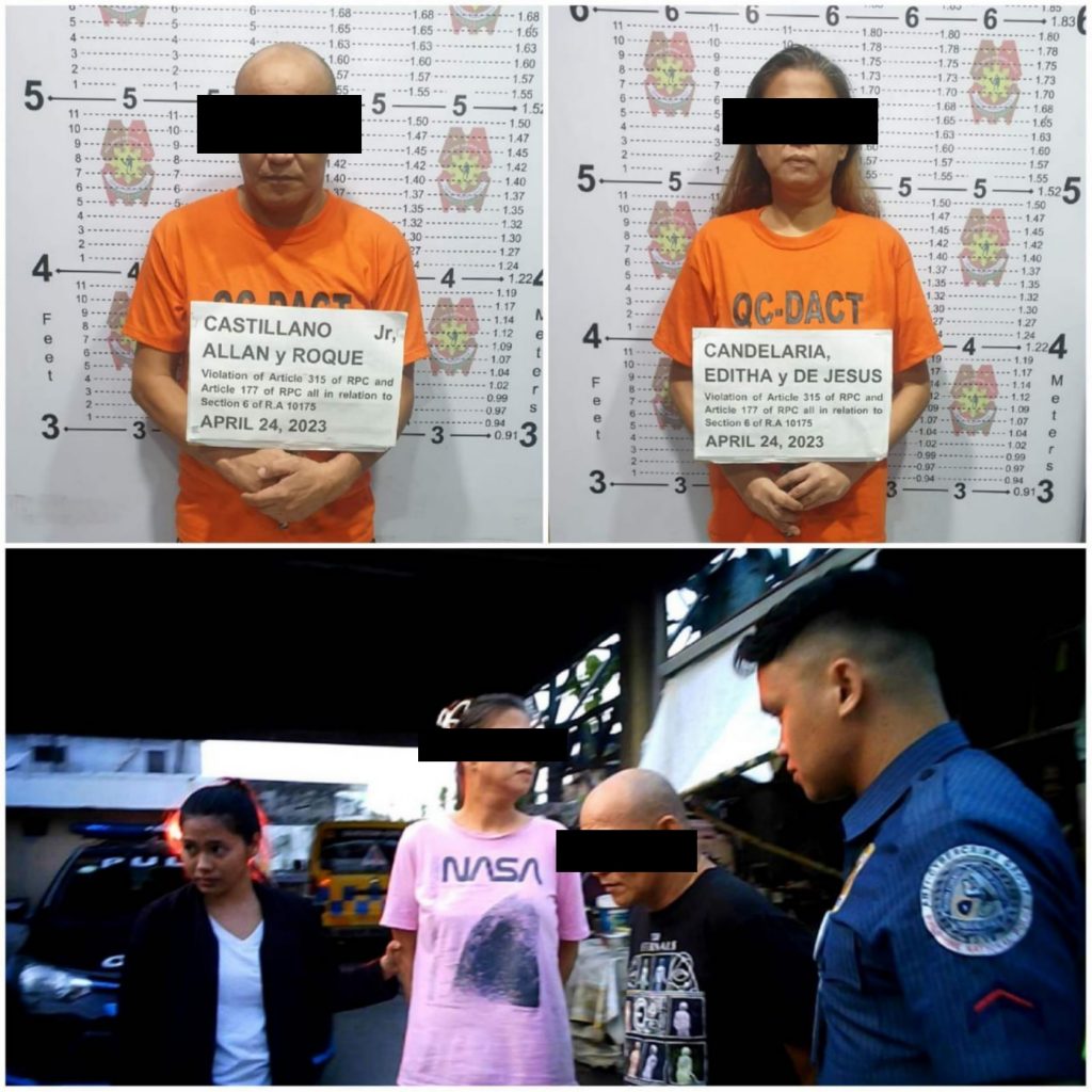 The suspect was identified as Allan Roque Castillano, Jr.,47, a former vendor inside the PNP’s Camp Bagong Diwa, and a resident of Gapan, Nueva Ecija, and his accomplice Editha de Jesus Candelaria, 48, a resident of San Fernando, Pampanga, was taken into custody. Before the entrapment operation, a police officer received an SMS from Castillano (a.k.a. Santos), who introduced himself as a Non-Uniformed Personnel of the Office of the Regional Director PNP-NCRPO and asked for donations for their team building. Castillano was subsequently arrested with the assistance of GCash.