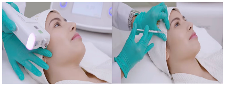 The entire procedure takes around 45 minutes and is completely pain-free. A trained aesthetician will start by cleaning the skin around the eyes and marking the target area. They will then use the HIFU and finally inject Botox in the area that needs to be treated.