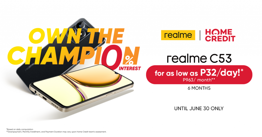 realme Philippines and Home Credit recognize that not all young Filipinos can afford a one-time big-time payment, so the realme C53’s installment plan is tailor-fit especially for them. At a lowest possible down payment of only PHP 2,399, young fans can easily save up with their allowance and avail the new model immediately.