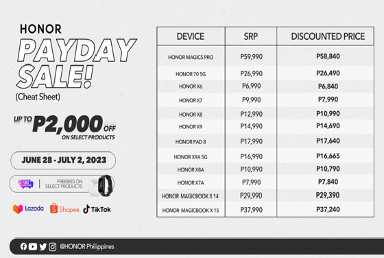 HONOR Philippines, the country’s leading smart devices provider, just dropped exclusive deals and free shipping discounts nationwide this payday sale! From June 28 to July 2, you can get up to Php 2.000 worth of discounts via Lazada, Shopee, and TikTok Shop!