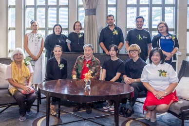 Some of this year’s MaArte at The Pen exhibitors. From left to right (Standing) Filip + Inna Founder and Creative Director Lenora A. Cabili, The Peninsula Manila’s Grace Lim, Disenyo