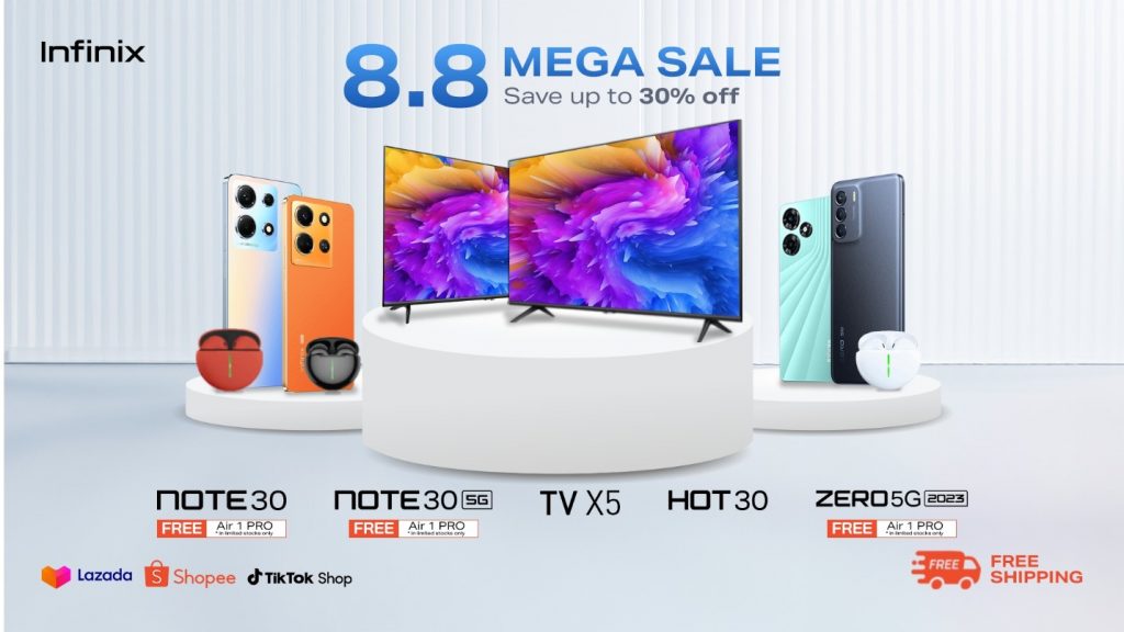Mark your calendars for this Infinix 8.8 Mega Sale, and save up to 30% off across Infinix’s official Tiktok Shop, Lazada, and Shopee. Don’t miss out on these price drops that will last only for a limited time. So, make sure you’re ready to snag the best deals and free shipping before they vanish. Get exclusive freebies on select Infinix phone models.