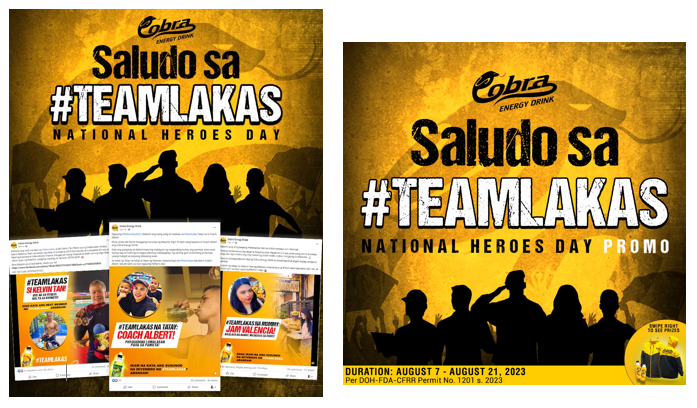Kaya naman ngayong National Heroes Day, tandaan na magbigay pugay sa mga bayani ng ating buhay. Be a hero as well with Cobra Energy Drink! Post your own “modern-day” hero stories with the caption #TeamLakas #CobraEnergyDrink and tag @CobraEnergyDrink Facebook page or @CobraEnergyDrinkPH in Tiktok. You can also visit Cobra Energy Drink online store https://asiabrewery.com/collections/cobra.