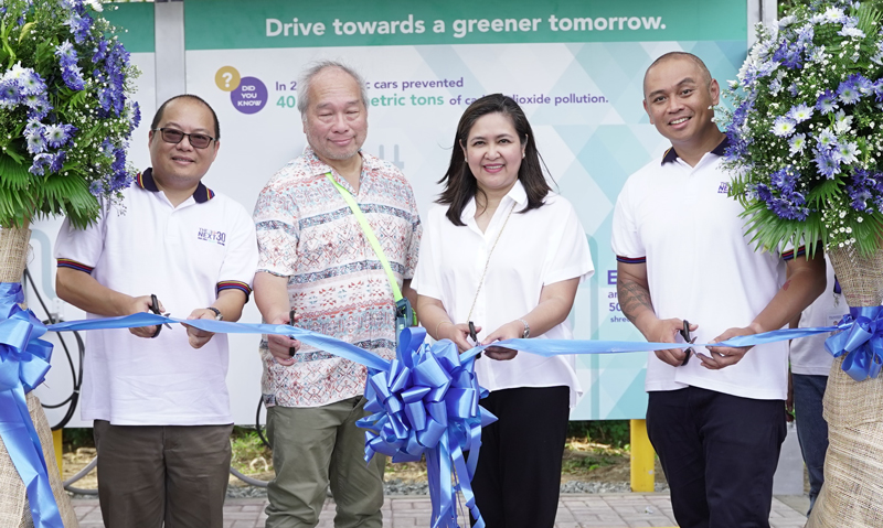 Present during the launch of the e-vehicle charging stations were (L-R): Share Pro Inc. supply chain management head Andrew Gotianun III, Filinvest Development Corporation vice president Michael Gotianun, Filinvest Alabang Inc. president & COO Catherine Ilagan and vice president for townships Don-Don S. Ubaldo.