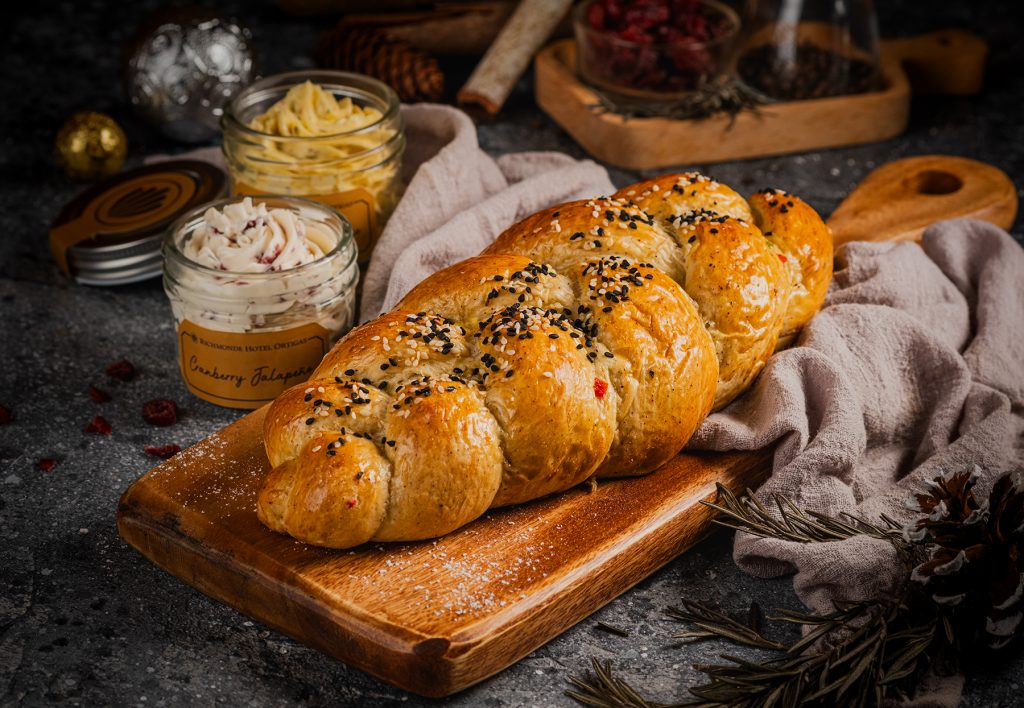 Specialty breads make snacking more interesting and more delicious. Richmonde’stalented bakers created these choice bread options: Banana Walnut Bread (PhP 345), Pesto Loaf (PhP 220), Pepper Brioche (PhP 275), and Walnut & Raisin Baguette (PhP 180). Pair these breads with the hotel’s very own Italian butter spice (PhP 200) and Cranberry Jalapeno Dip (Php 225) and enjoy more enhanced flavors.