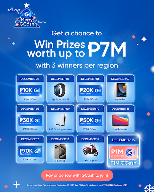 Each use increases your chances of earning more raffle tickets and winning exciting prizes at the 12 Days of Merry GCash, whether it’s making payments on your favorite online stores, utilizing your GCash Card for convenient Christmas shopping at your preferred retail shops, or buying load to stay connected with loved ones.