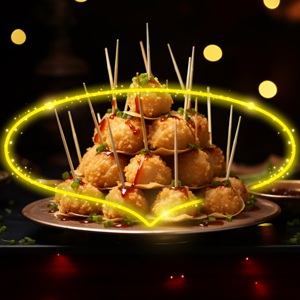 Guests will also be intrigued with this appetizer – the Chicken Balito. Imagine a tower of small, round balls made from a savory dough filled with minced chicken and diced ham. Seasoned with MAGGI Magic Sarap, these dough balls are lightly fried and are then carefully assembled into a tower-like structure, using bamboo skewers and a base of fried wonton wrappers for support and added crunch.
