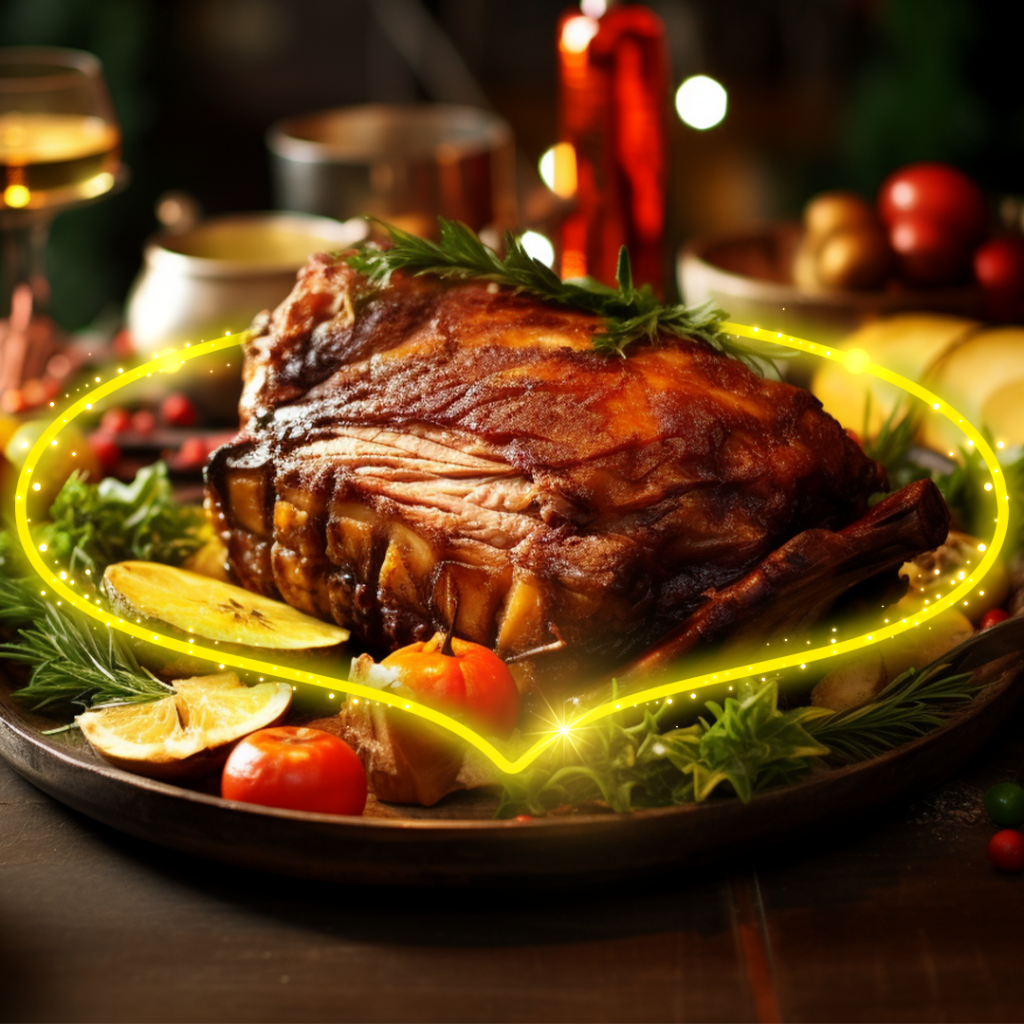 The Pork Balamisto can be served as the Noche Buena centerpiece in lieu of the traditional lechon. This dish features a whole, bone-in pork shoulder that is slow-roasted to perfection. The pork is marinated overnight in a rich blend of native spices and herbs, allowing the flavors to deeply infuse into the meat. The unique aspect of Pork Balamisto is the crispy, crackling skin achieved through a special roasting technique, where the pork is first basted with MAGGI Magic Sarap and a glaze of pineapple juice and annatto oil, then roasted at a high temperature towards the end. The result is a stunning golden-brown crust that contrasts beautifully with the succulent, tender meat inside.