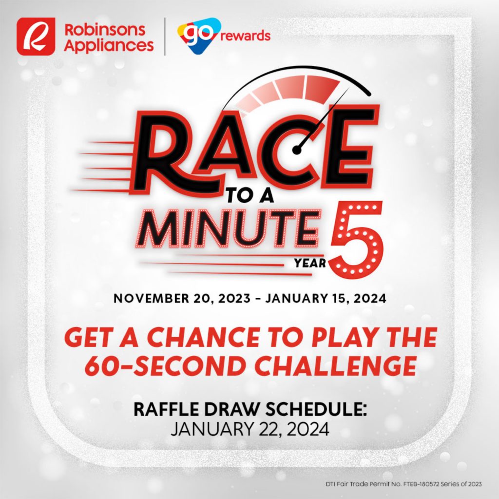 Purchase of these TVs will also earn you a raffle ticket for a chance to be one of the lucky players of Robinsons Appliances’ Race to a Minute Year 5. More than P2,000,000 worth of appliances and gadgets will be given away to lucky racers who will face the thrilling challenges and reach the finish line.