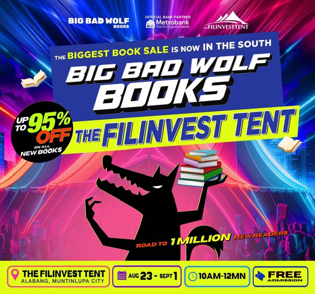 Calling all Wolfies! Big Bad Wolf is making its way to the south of the metro! The world’s biggest book sale is set to take over the Filinvest Tent in Alabang from August 23 to September 1.