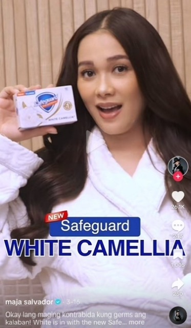 In one of her TikTok reels, Maja reveals her newfound ally against germs, and it is both expected and unexpected—Safeguard White Camellia.
