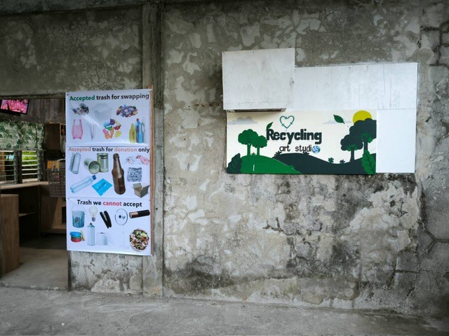 The Recycling Art Studio is also open to receiving recyclables from community members, in exchange for household items such as canned goods, or services like washing machine use. They also provide refillable products as an option.
