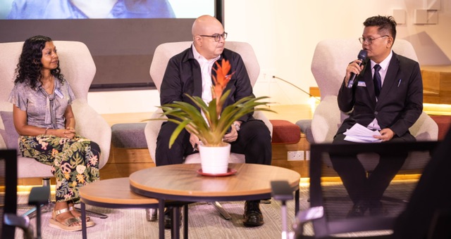 Dr. Natasha Kuruppu; Climate Change Commission Philippines Deputy Executive Director Romell Antonio Cuenca; and moderator Atty. Michael T. Macapagal, Partner at Quisumbing Torres.