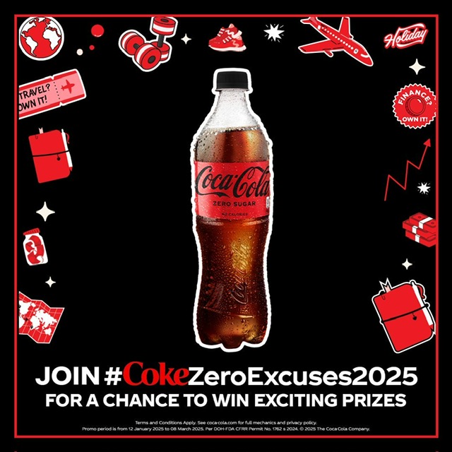 What are you waiting for? With Coke Zero, own the new year this 2025! Make sure to follow the official pages of Coca-Cola on Facebook and Instagram to be the first to know more news on the #CokeZeroExcuses2025 Promo.
