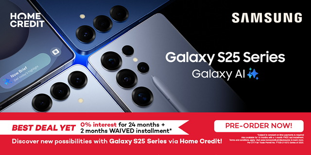 Pre-order now through Home Credit to be among the first to own the Samsung Galaxy S25 Series and experience its incredible features and Galaxy AI firsthand. Visit Shoppingmall.ph to explore Home Credit’s exclusive offers and browse Samsung’s flagship products. Head to the nearest authorized Samsung retailer to pre-order and purchase your newest Samsung S25 series products. Waived installment offers are valid until Feb 28, 2025.