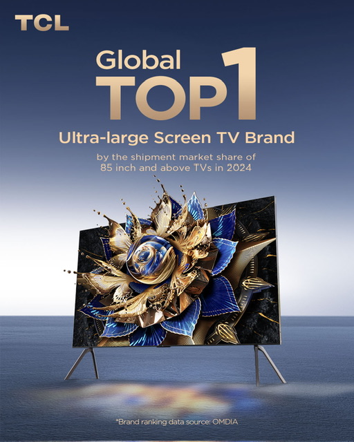 TCL Electronics, a leading consumer electronics brand and the world’s top 2 TV brand, has been recognized with three Global TOP 1 rankings by the market research company Omdia, highlighting its leadership in ultra-large TVs, Mini LED TVs, and Google TVs.