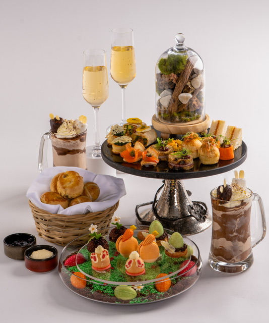 For an Easter-inspired afternoon tea, delight in a wide array of tea sandwiches, delectable pastriesand freshly baked scones at Oasis Garden Café. These include a savory chorizo and egg mousse tea sandwich, an orange cinnamon sable, Cheshire Pork Pie with glazed apple, and more. Enjoy it all with a pot of tea, an easter-inspired mocktail or sparkling wine, and freshly brewed coffee.