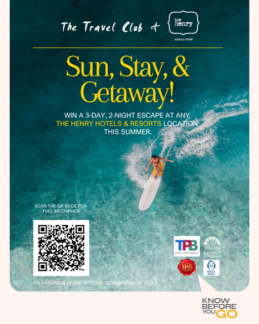 As part of the ongoing celebration, travelers have a chance to book and win a dream escape. Guests who shop at any The Travel Club+ stores can receive an exclusive promo code to use when booking a stay at any Henry Hotels & Resorts property. Each successful booking made from April 15 to June 30, 2025 earns a raffle entry to win a luxurious 3-day, 2-night stay at The Henry Hotels & Resorts. Travelers can discover more by visiting The Travel Club and The Travel Club+ stores nationwide, or exploring curated journeys, partnerships, and travel essentials at www.thetravelclub.ph.