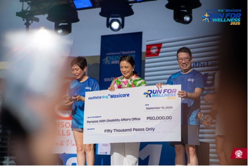 Continuing their advocacy as champions of health and wellness, Southstar Drug and Maxicare Healthcare Corporation donated Php 50,000 to Naga City’s Persons with Disability Affairs Office that was received by Naga City Mayor Leni Robredo during the awarding ceremony of Run For Wellness Naga.