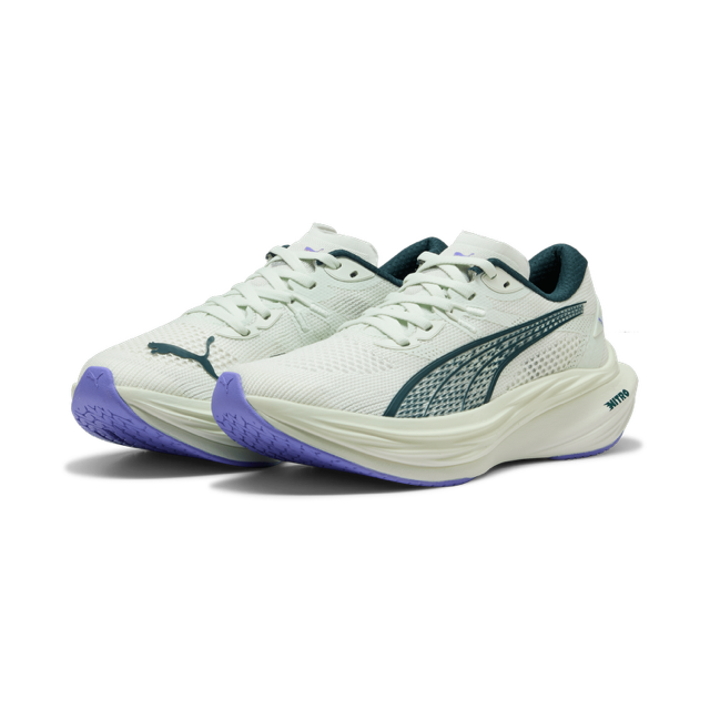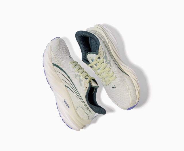 This latest release unites the NITRO family through two expressive palettes — Green Terrain-Heat Fire, a rich bluish-green accented with vibrant orange and white for an energetic vibe, and Sage Frost-Green Terrain, a primarily white scheme highlighted by subtle purple and green accents. Together, these colorways embody movement, versatility, and the distinctive spirit of PUMA running.