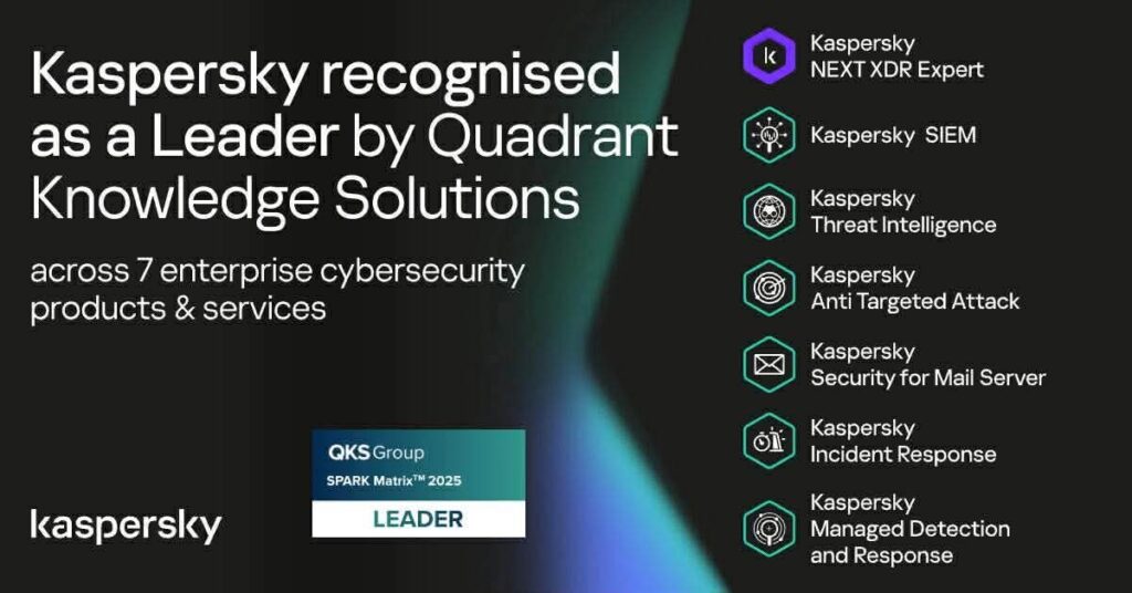 Quadrant Knowledge Solutions (QKS), a global advisory firm, has named Kaspersky a Leader across seven core cybersecurity products and services for corporate organizations in a series of its SPARK Matrix™ reports. QKS highlighted Kaspersky’s strong technological capabilities, customer impact and ability to combine advanced threat intelligence, AI-driven technologies and human expertise to support modern security operations at scale.