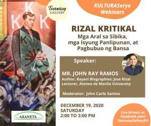 This Rizal Month, Gateway Gallery will air its fifth KulturaSerye webinar Rizal Kritikal: Mga Aral sa Sibika, mga Isyung Panlipunan, at...